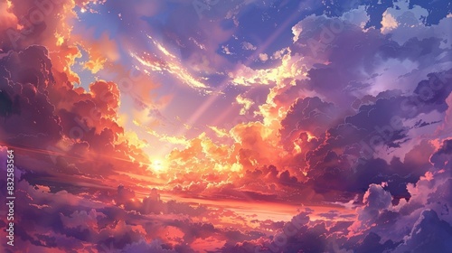 © pngking, Fototapeta premium Sky at twilight illuminated by the setting sun amidst beautiful clouds