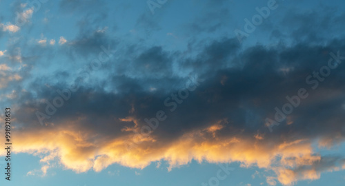 Obraz premium Sky background. Bright evening sunset sky with dramatic clouds.