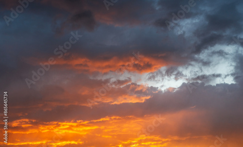 Obraz premium Sky background. Bright orange sunset sky with clouds.