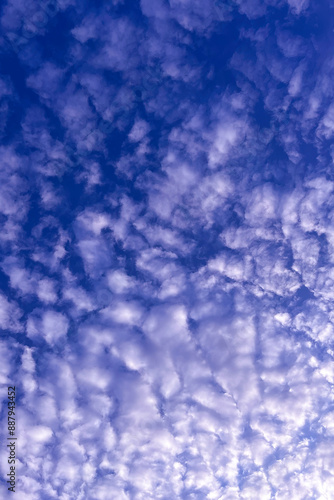 Obraz premium Sky background with clouds. Beauty of white clouds on blue sky with soft sunlight, nature view