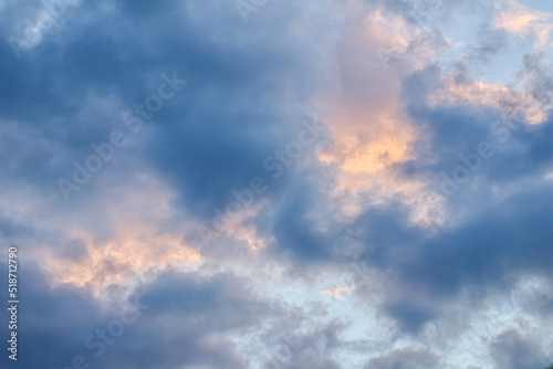 Obraz premium Sky background with sunlight through clouds at sunset