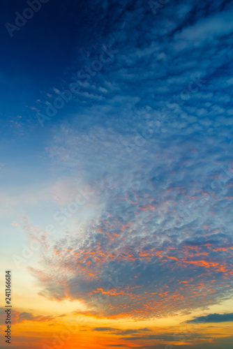 Fototapeta premium Sky blue and orange light of the sun through the clouds in the sky