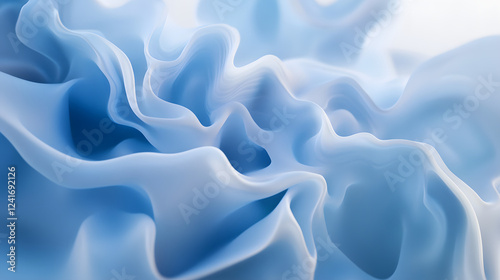 Fototapeta premium Sky blue soft fog overlaying abstract shapes, blending in with a white...