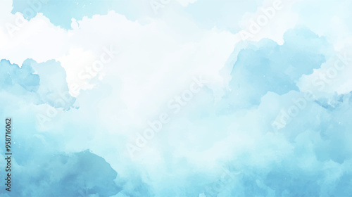 © Paradox, Fototapeta premium Sky blue watercolor illustration paint on paper textured canvas element. painting soft blue textured on wet white paper, Light sky blue brush painted watercolor background.