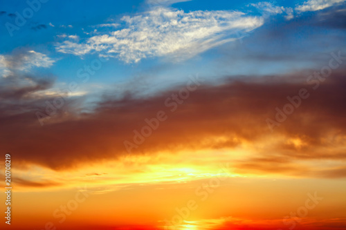 Fototapeta premium Sky, Bright Blue, Orange And Yellow Colors Sunset.