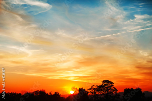 © Rock and Wasp, Fototapeta premium Sky, Bright Blue, Orange And Yellow Colors Sunset. Instant Photo