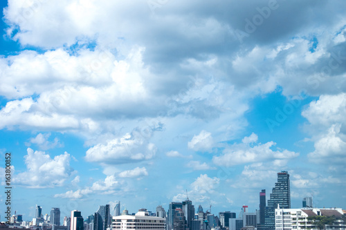Fototapeta premium Sky & clouds background with city view at bottom part.