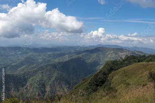 © Wuttichai, Fototapeta premium Sky, clouds, forest and morning flowers