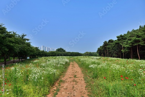 © SUNGMIN, Obraz premium 경관, 길거리, sky, 경로, 네이처, 목초, 들판, 여름, 국가, 농촌, green, 나무, 시골, 나무, 목초지, 구름, 구름, 나무, 길, 고개, 여행, 봄, 아웃도어, 수평선, 걷다