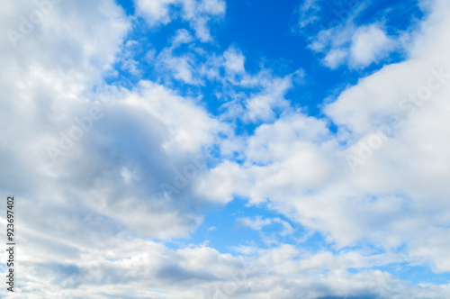 Fototapeta premium Sky landscape. Blue sky background with white dramatic colorful clouds in sunny day