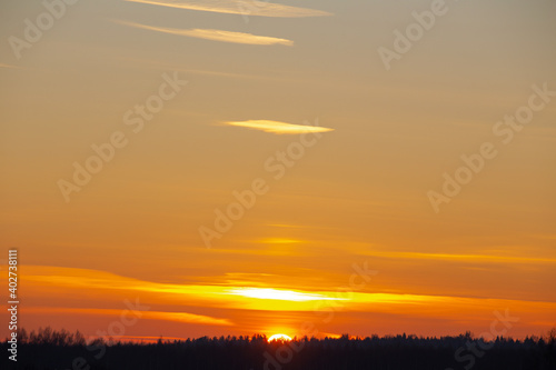 Fototapeta premium sky landscape, winter clouds with a setting orange sun