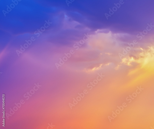 Fototapeta premium Sky midday sunlight beams rainbow pastel gradient pale orange-pink purple-blue dramatic. Beautiful sunny day soft light clouds blur background