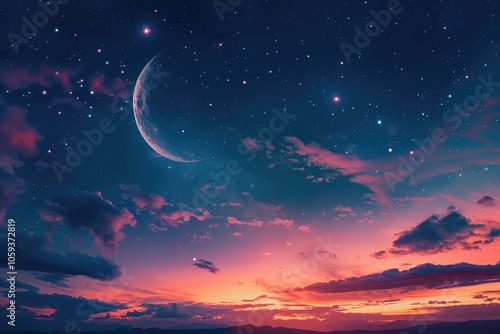 Naklejka premium Sky night stars and moon islamic night sunset wallpaper