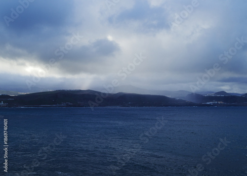 © Tamara Kulikova, Fototapeta premium Sky over Gran Canaria, cloud cover with gaps, rays of sunshine