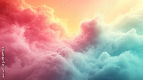 Fototapeta premium Sky Serenity: A dreamy composition of vibrant, multicolored clouds filling the frame, creating a sense of tranquility and ethereal beauty.