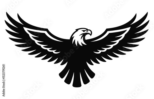 Obraz premium "Sky Sovereign: Linocut Silhouette of a Soaring Eagle"