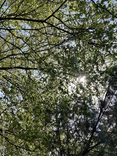 Fototapeta premium sky view between trees in sunny day