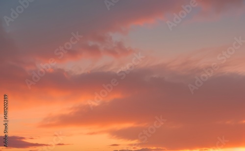 Fototapeta premium Sky with clouds showing shades of orange pink and purple during sunset.