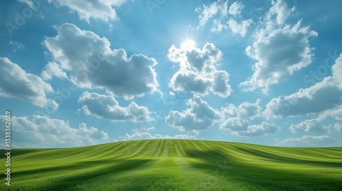 © santi, Fototapeta premium Sky with puffy clouds casting long shadows over rolling hills