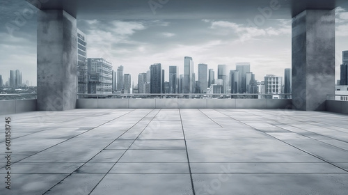 Fototapeta premium skyline and buildings with empty concrete floor. Generative AI