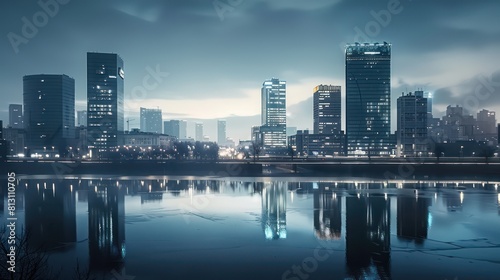 © MADGALLERY, Fototapeta premium skyline building, river water reflection, clear sky