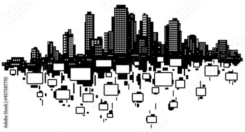 © higyou, Obraz premium Skyline City Rooms Silhouette
