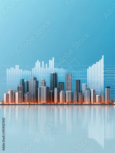 Fototapeta premium Skyline Data Visualization Cityscape - Urban development, financial growth, data analysis, economic progress, future technology symbolized in a modern cityscape with overlaying charts and graphs.