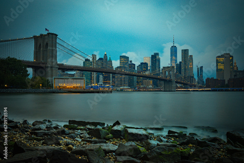 Fototapeta premium Skyline de Nueva York desde el Dumbo hasta el puerto de columnas