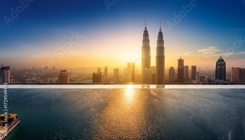 Obraz premium skyline features iconic twin towers at sunrise symbolizing resi