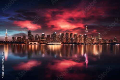 © Rawpixel.com, Fototapeta premium Skyline night architecture illuminated.