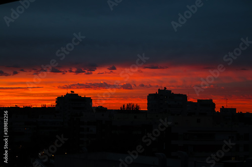 Fototapeta premium skyline of a Madrid neighborhood at dawn