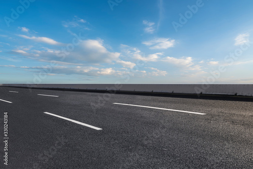 © zhouyilu, Fototapeta premium Skyline of Asphalt Pavement and Blue Sky and White Cloud