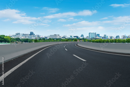 © zhouyilu, Fototapeta premium Skyline of Asphalt Pavement and Blue Sky and White Cloud