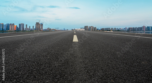 © zhouyilu, Fototapeta premium Skyline of Asphalt Pavement and Urban Architecture