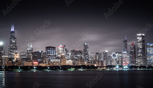 © 4kclips, Fototapeta premium Skyline of Chicago by night - view from Lake Michigan - travel photography