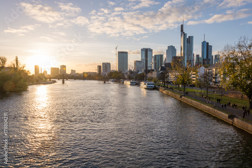 Obraz premium Skyline of Frankfurt during sunset with beautiful sky and clouds