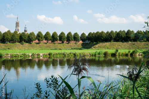 © Corinne, Fototapeta premium skyline of Hulst with water and Sint Willibordus Basilica, The Netherlands