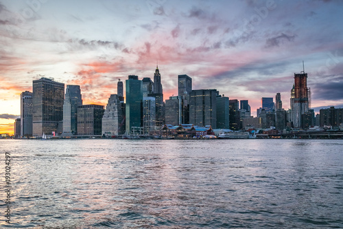 Fototapeta premium Skyline of Manhattan after sunset, View from Brooklyn side, New York, USA