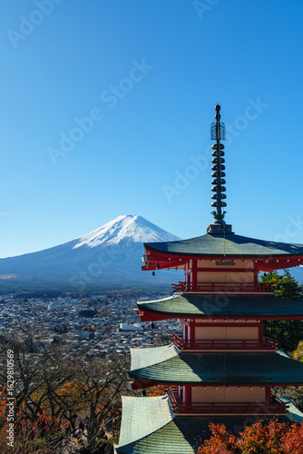 © Kem, Obraz premium Skyline of Mount Fuji with Snow Cap in Sunlight under Blue Sky