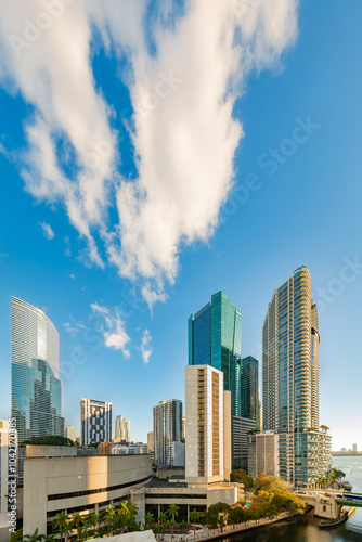 Fototapeta premium Skyline of office and apartment buildings in downtown Miami, with Miami river...