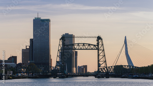 Naklejka premium Skyline of Rotterdam With Erasmus Bridge and Kop van Zuid, Netherlands