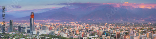 © sara_winter, Fototapeta premium Skyline of Santiago de Chile from Cerro San Cristobal, sunset