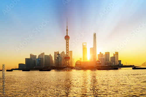 © gui yong nian, Fototapeta premium Skyline of Shanghai Pudong at sunrise, China