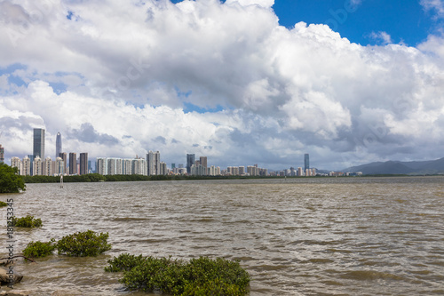 Fototapeta premium Skyline of Shenzhen city from the Shenzhen bay