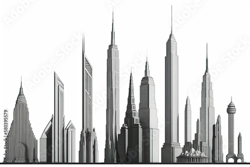 Fototapeta premium Skyline of skyscrapers drawn on a white background. Generative AI