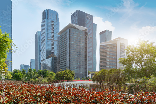 © zhouyilu, Obraz premium Skyline of urban architecture in Shenzhen, China..