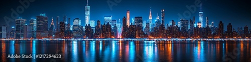 Fototapeta premium Skyline panorama of Manhattan at night, New York City, USA