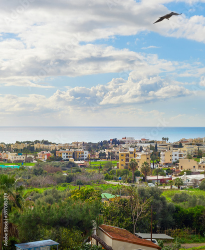 Fototapeta premium Skyline Paphos bird flying Cyprus