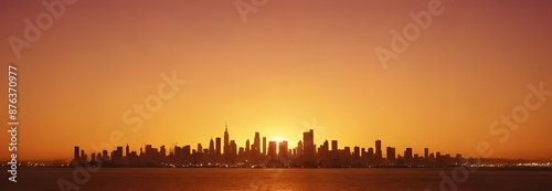 Naklejka premium Skyline. Pink, yellow and orange, template empty space. Color gradient rough...