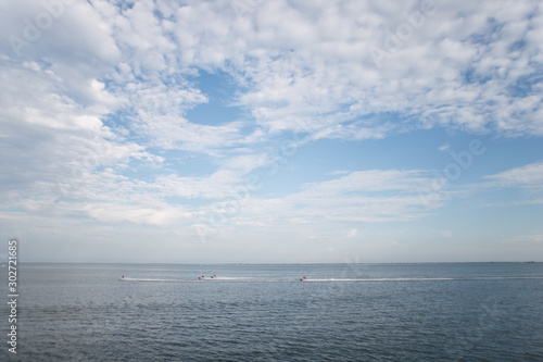 © Victoriya Bulyha, Fototapeta premium skyline sea jet skis